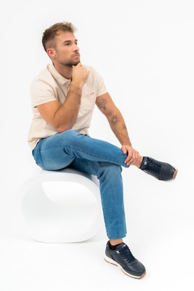 férfi sneaker - felsőrésze valódi bőr - bélése textil - talpbélése memóriahabos textil - nyomott mintával díszítve