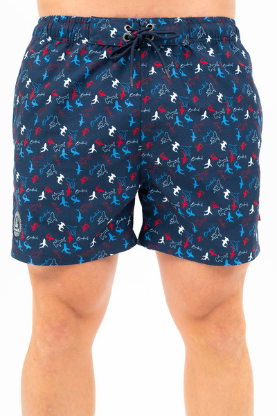 Férfi beach short . Hálós belső nadrággal . Nyomott mintával és/vagy szövött címkével díszítve. Mindkét oldalán zsebek. Hátul egyik oldalán tépőzáras zseb. A nadrág hátsó részén vízkivezető lyukak.
