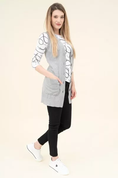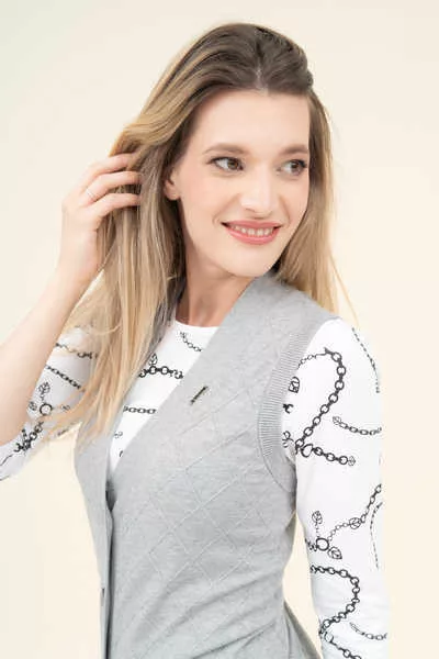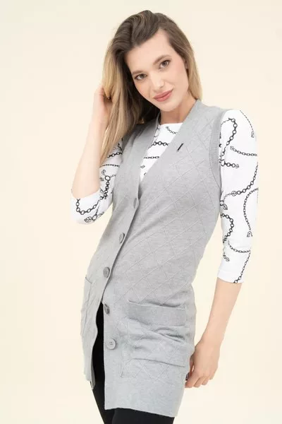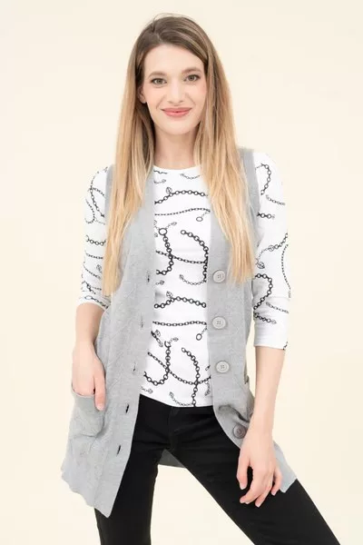 női vékony kötött mellény - egyenes fazon - fémcímkével díszítve