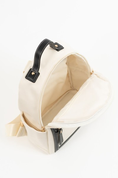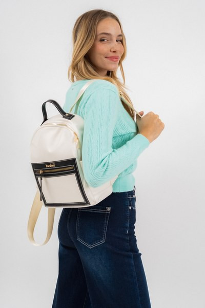 női textil hátitáskaműbőr részletekkel - cipzáras zsebekkel - állítható vállpántokkal - fémcímkével díszítve<br> <br><p>