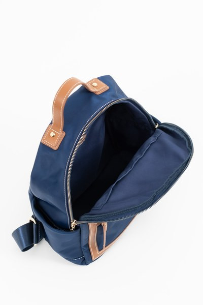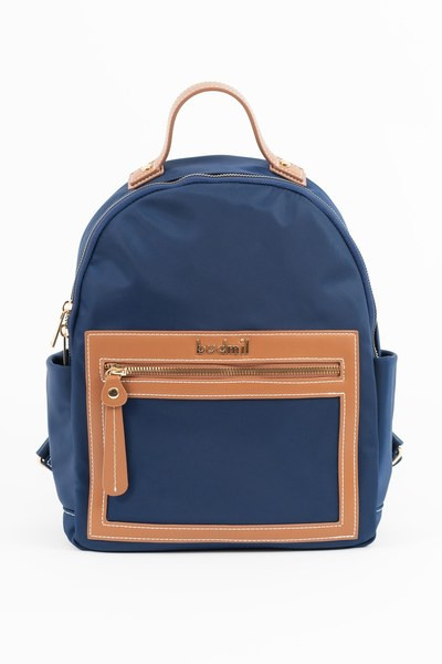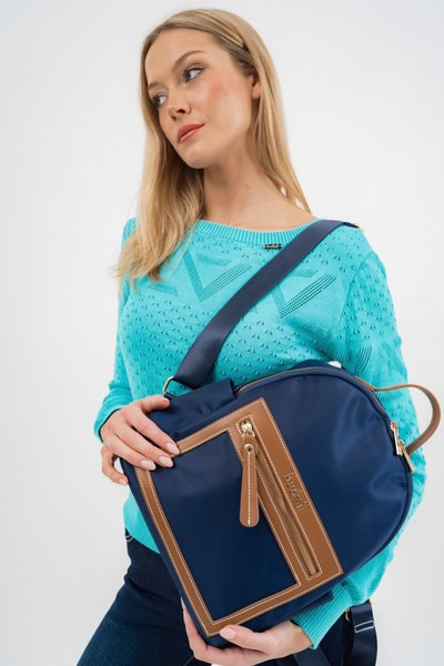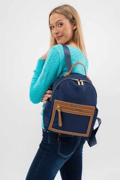női textil hátitáskaműbőr részletekkel - cipzáras zsebekkel - állítható vállpántokkal - fémcímkével díszítve<br> <br><p>