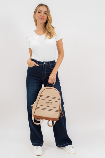 bézs-barna színű Budmil női hátitáskák - 10170084-001 női táska. Felsőrészének az anyaga: 100% poliuretán