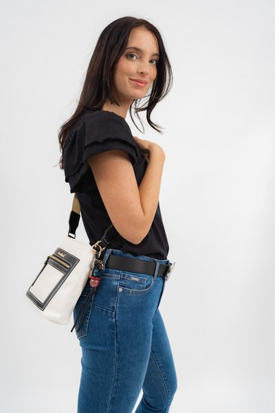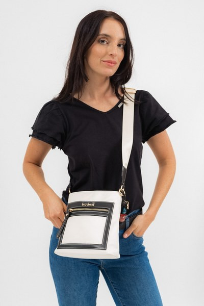 bézs-fekete színű Budmil női oldaltáskák - 10230107-001 női táska. Felsőrészének az anyaga: 100% nylon