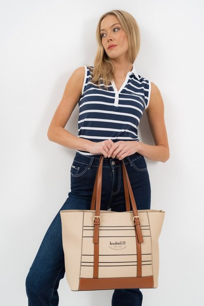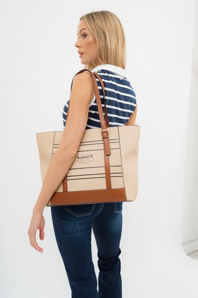 bézs-barna színű Budmil női oldaltáskák - 10230110-001 női táska. Felsőrészének az anyaga: 100% poliuretán