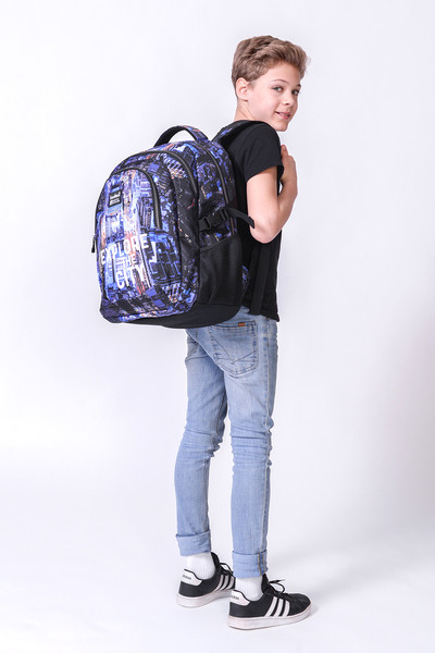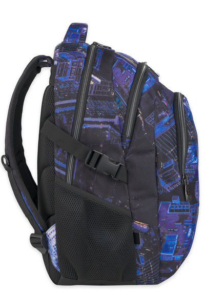 33x46x21 cm, 32L. Alapanyaga vízlepergető. Mindkét oldalán hálós kulacstartó zseb. Légcsatornás hátlap. Három különálló cipzáros rekesz. Az első rekeszben rendszerező zsebek.