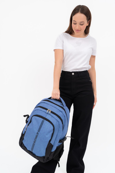 v.kék-fekete színű Budmil ovális hátitáska - B10110149-083 unisex táska. Felsőrészének az anyaga: 100% poliészter