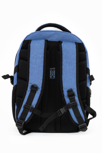 33x46x21cm, 0,87 kg. Alapanyaga vízlepergető. Mindkét oldalán hálós kulacstartó zseb. Légcsatornás hátlap. Három különálló cipzáros rekesz. Az első rekeszben rendszerező zsebek. Laptoptartó: 30X40cm.