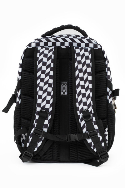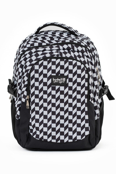 fekete-fehér színű Budmil ovális hátitáska - B10110149-085 unisex táska. Felsőrészének az anyaga: 100% poliészter