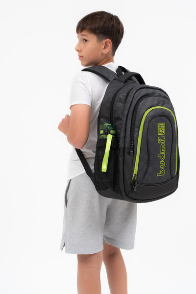 fekete-szürke színű Budmil ovális hátitáska - B10110183-050 unisex táska. Felsőrészének az anyaga: 100% poliészter