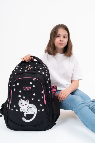 fekete-fehér színű Budmil ovális hátitáska - B10110188-056 unisex táska. Felsőrészének az anyaga: 100% poliészter