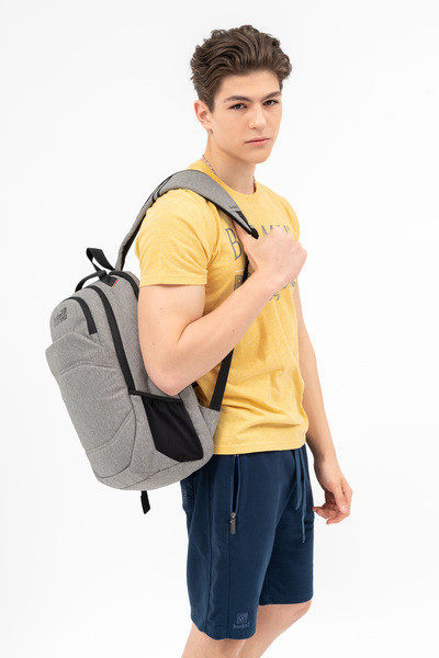 szürke melanzs színű Budmil ovális hátitáska - B10110262-001 unisex táska. Felsőrészének az anyaga: 100% poliészter