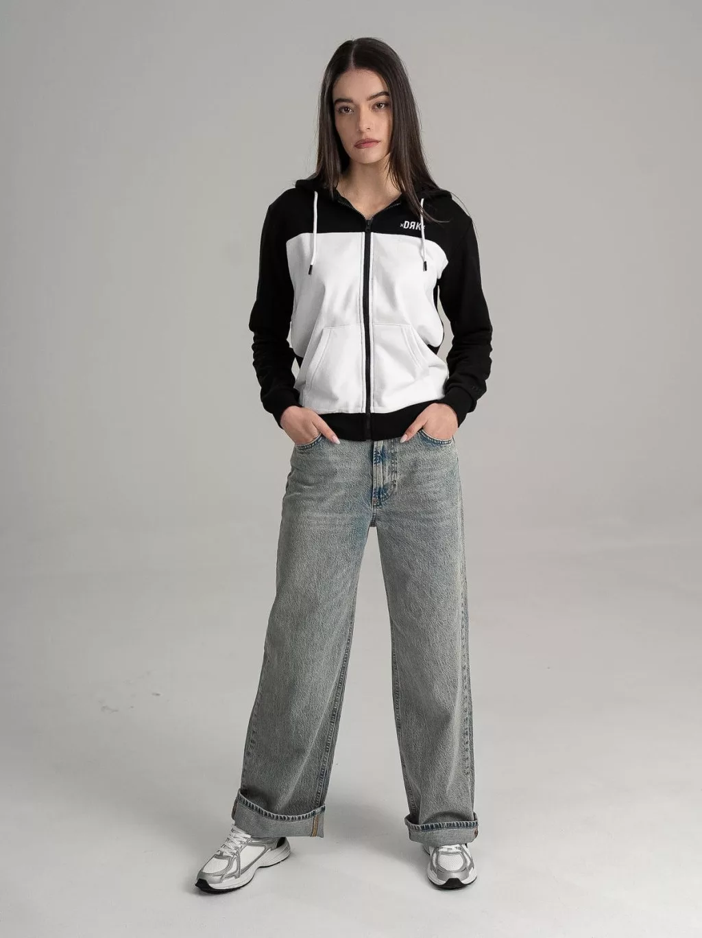fekete-fehér színű Dorko Melody női pulóver. Felsőrészének az anyaga: Pamut keverék