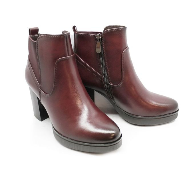 Bordó színű Fashion Shoes FS-YCC21 Burgundy női bokacsizma. Felsőrészének az anyaga: Ekológikus bőr felső