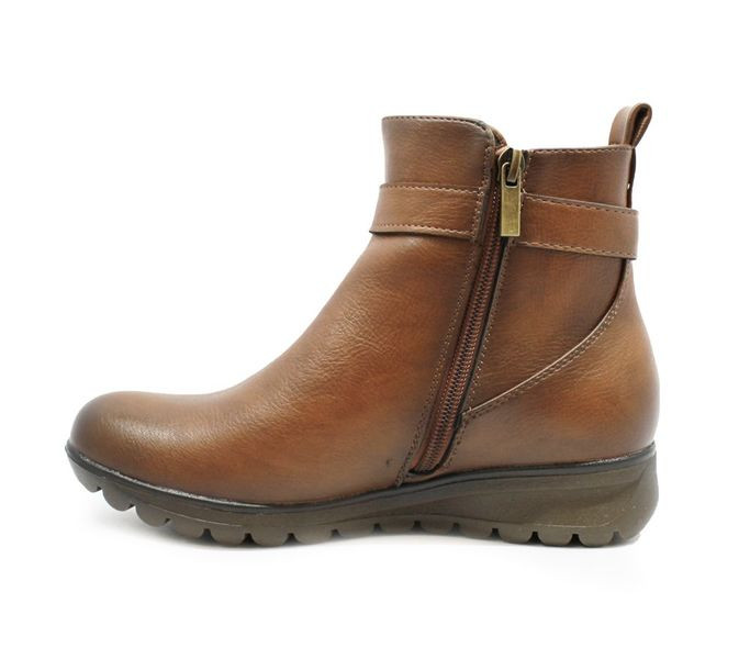 Barna színű Fashion Shoes FS-YCC60 Camel női bokacsizma. Felsőrészének az anyaga: Ekológikus bőr felső