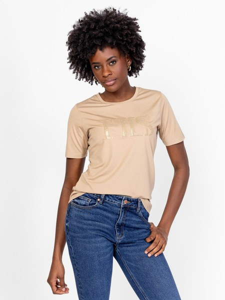 Bézs színű Heavy Tools Mahele Sand női póló. Felsőrészének az anyaga: