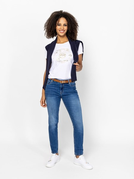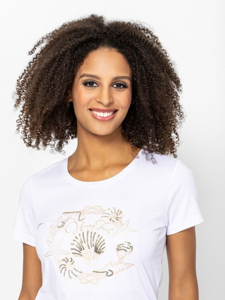 Fehér színű Heavy Tools Matuka White női póló. Felsőrészének az anyaga: