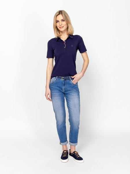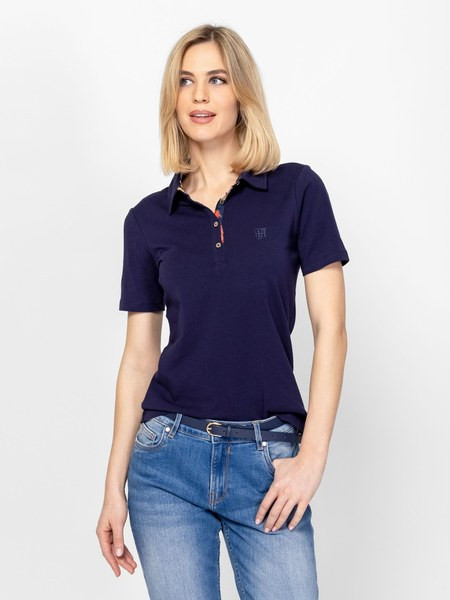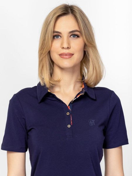 Kék színű Heavy Tools Demola Navy női póló. Felsőrészének az anyaga: