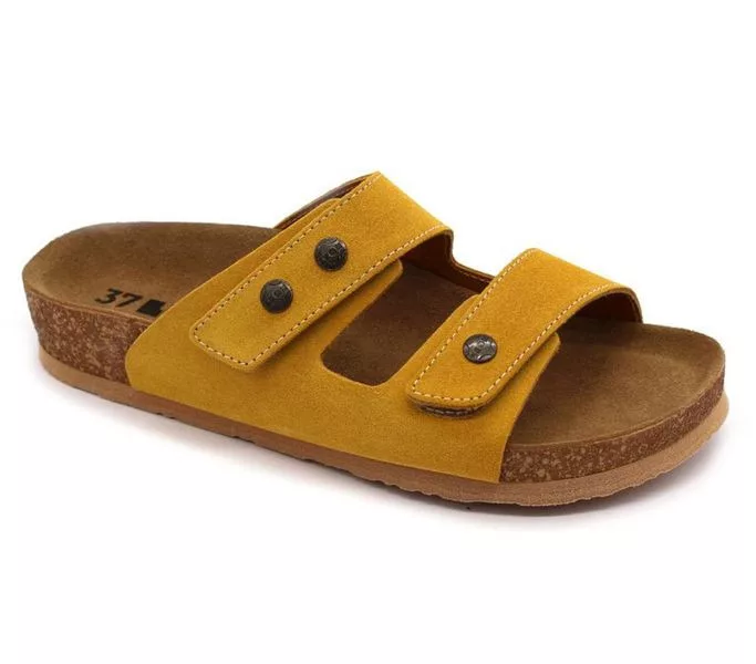Sárga színű Leon Comfort 4050 Sarga-velur női papucs. Felsőrészének az anyaga: Bőr felső