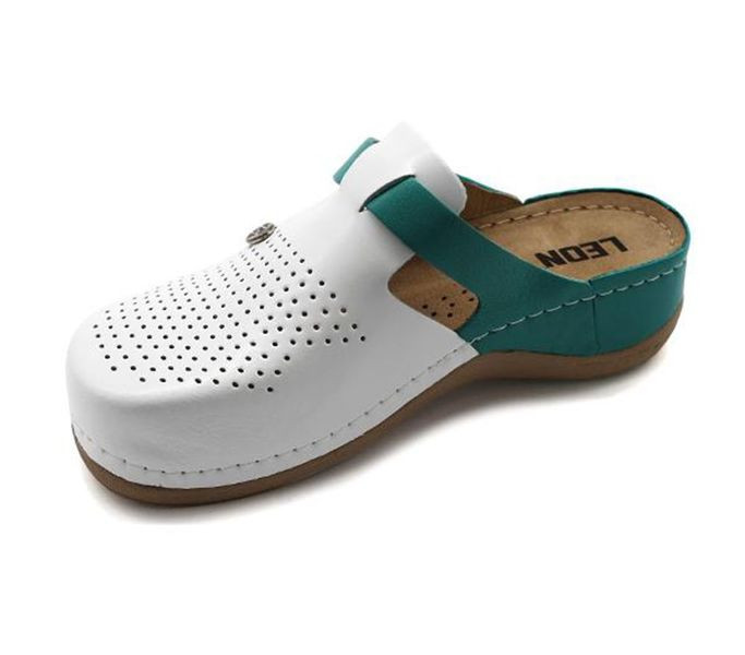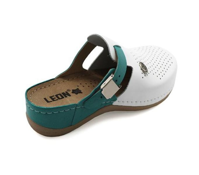 Fehér színű Leon Comfort 901 Fehér/Türkiz női papucs. Felsőrészének az anyaga: Bőr felső
