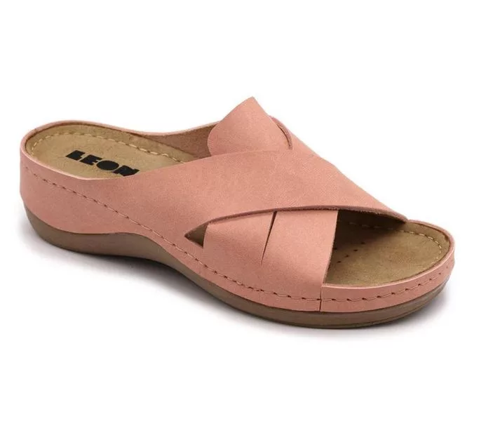 Rózsaszín színű Leon Comfort 932 Rose női papucs. Felsőrészének az anyaga: Bőr felső