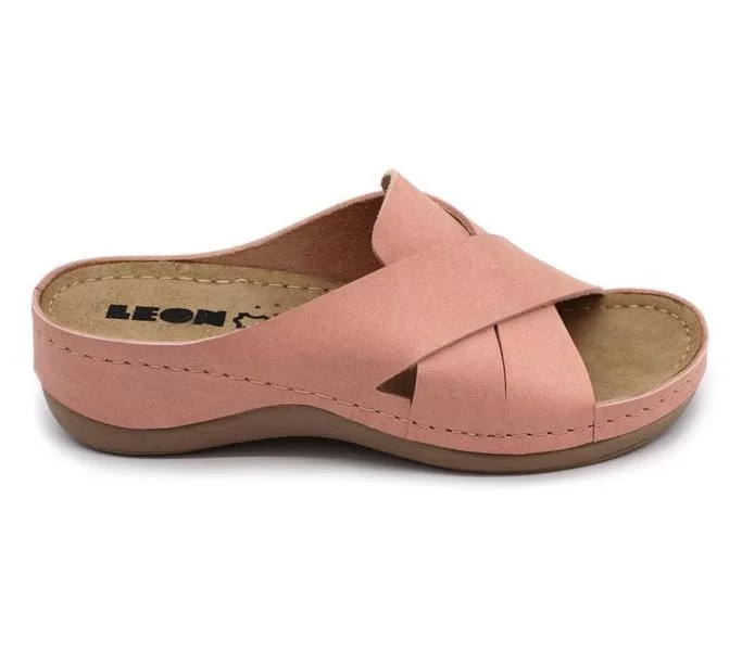 Rózsaszín színű Leon Comfort 932 Rose női papucs. Felsőrészének az anyaga: Bőr felső