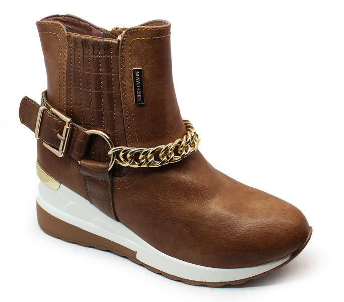 barna színű Mayo Chix 1236 Camel női bokacsizma. Felsőrészének az anyaga: Szintetikus felső