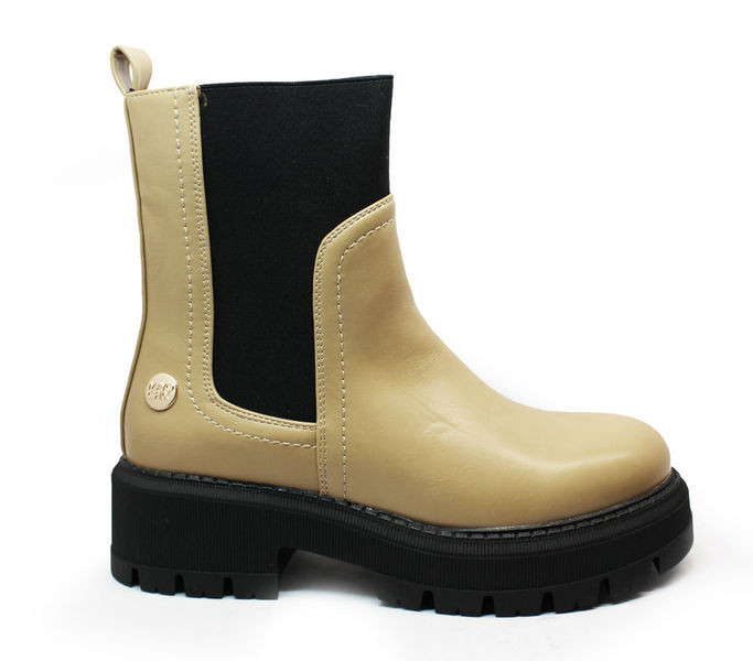 Bézs színű Mayo Chix 1243 Beige női bokacsizma. Felsőrészének az anyaga: Szintetikus felső