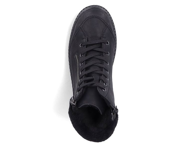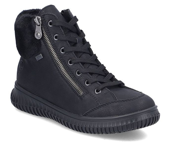 Fekete színű Rieker 74244-00 női bakancs. Felsőrészének az anyaga: műbőr felső