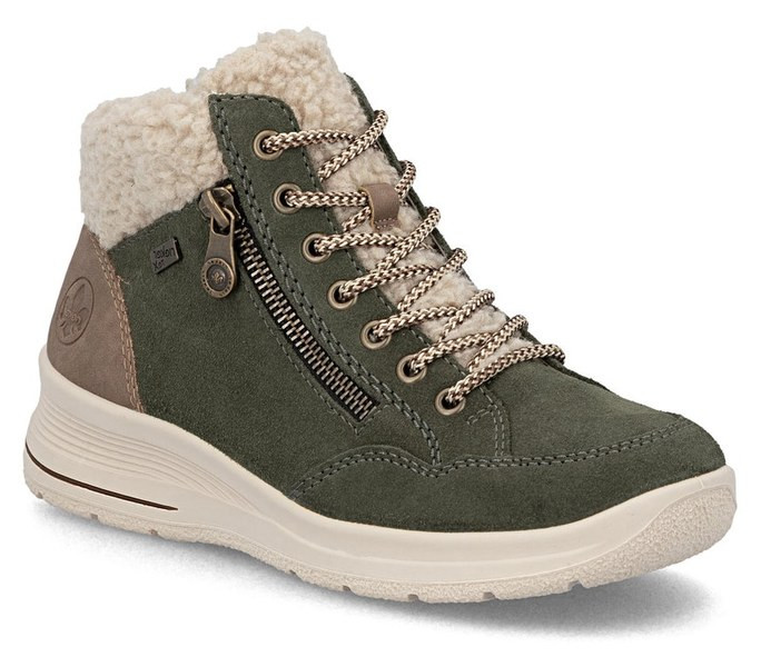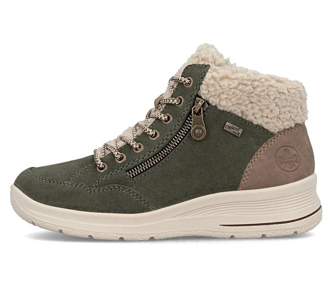 Zöld színű Rieker L7701-54 női bakancs. Felsőrészének az anyaga: Ekológikus bőr/bőr felső