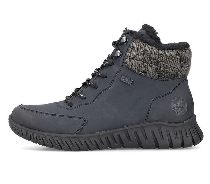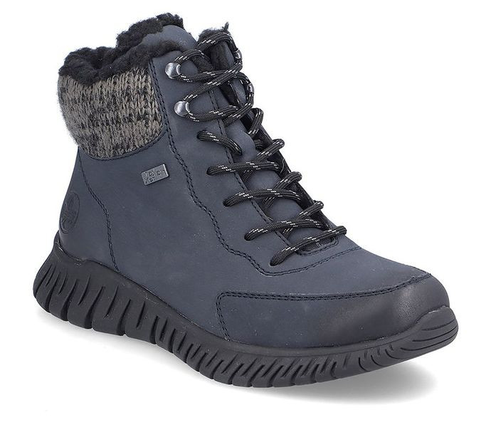 Kék színű Rieker M5310-14 női bakancs. Felsőrészének az anyaga: műbőr felső