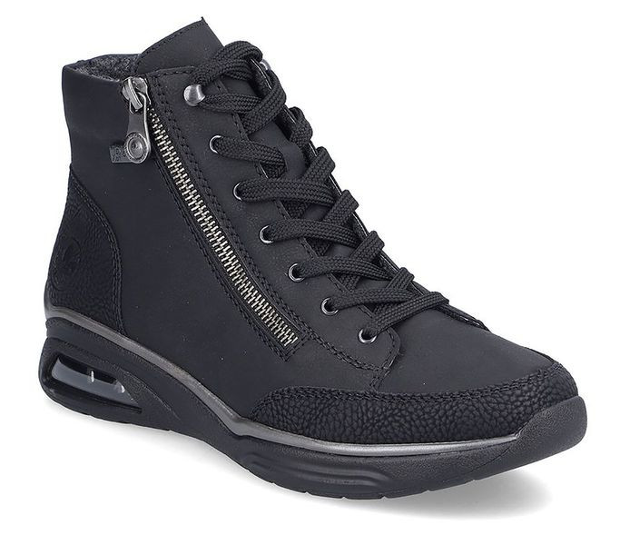 Fekete színű Rieker M5610-00 női bakancs. Felsőrészének az anyaga: műbőr felső
