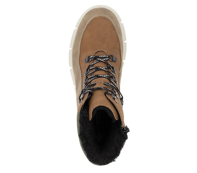 Barna színű Rieker X3404-90 női bakancs. Felsőrészének az anyaga: műbőr felső