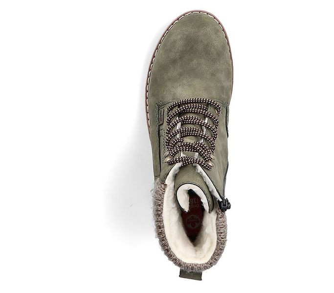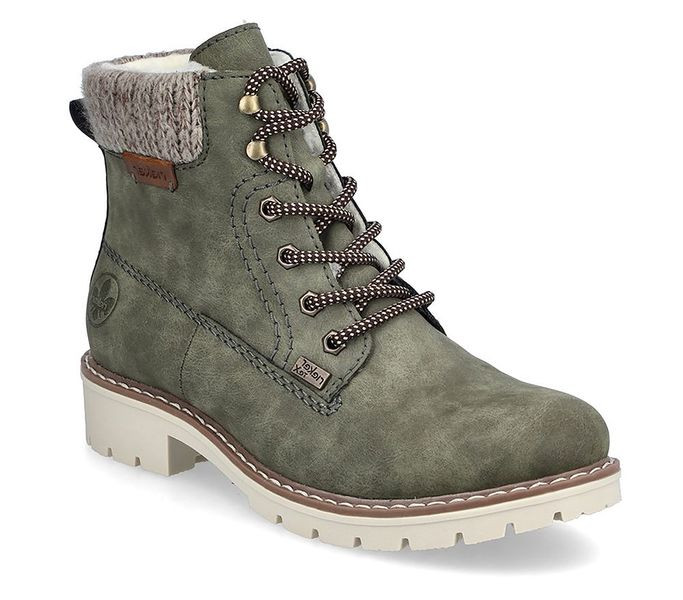 Zöld színű Rieker Y9118-54 női bakancs. Felsőrészének az anyaga: műbőr felső