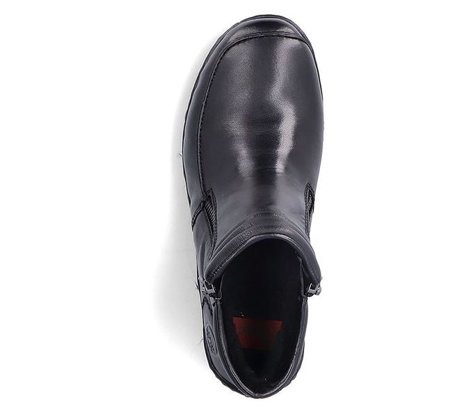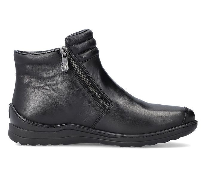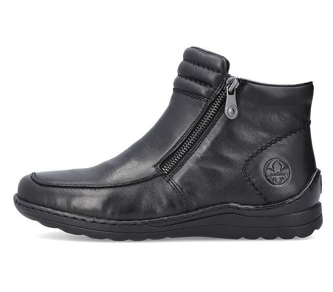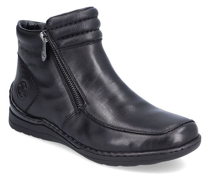 Fekete színű Rieker 48999-00 női bokacsizma. Felsőrészének az anyaga: bőr felső