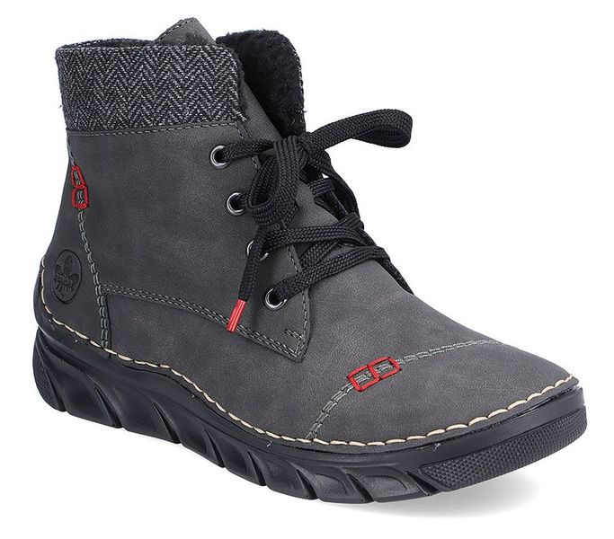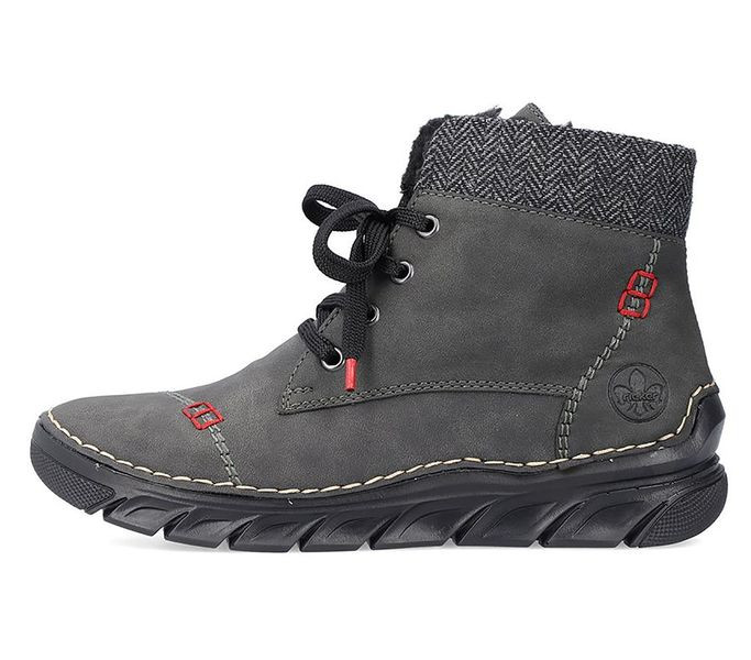 Szürke színű Rieker 55031-45 női bokacsizma. Felsőrészének az anyaga: műbőr felső