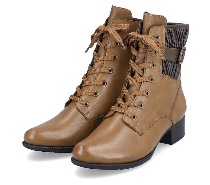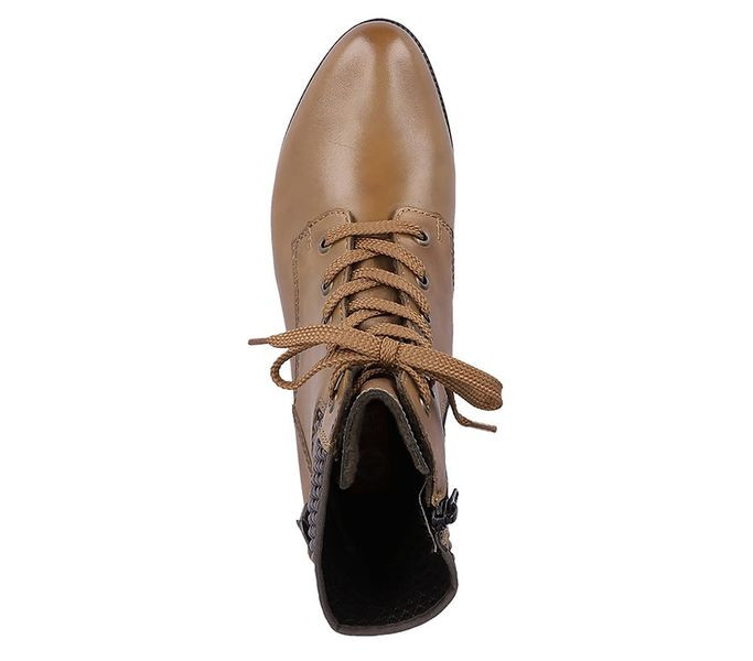 Barna színű Rieker 78601-22 női bokacsizma. Felsőrészének az anyaga: bőr