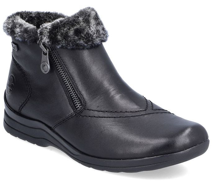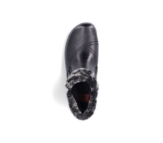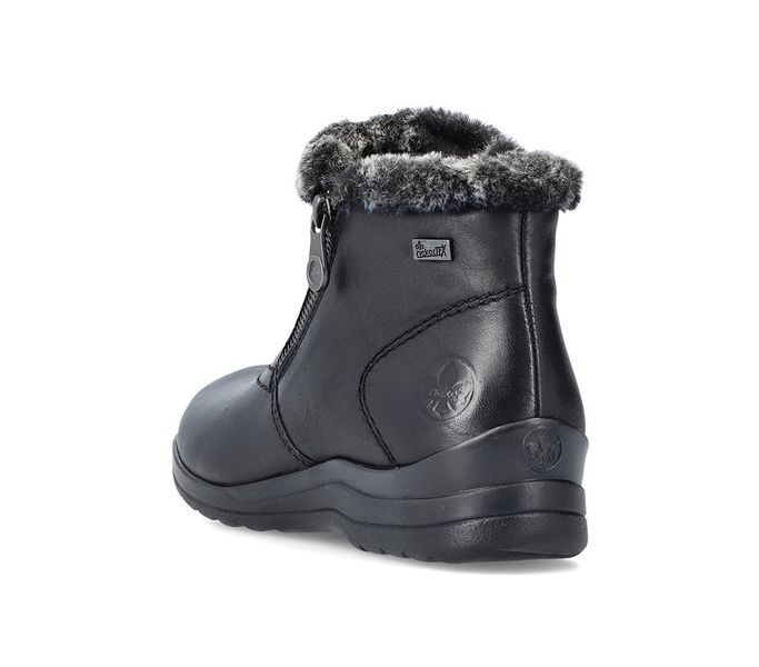 Fekete színű Rieker L1868-00 női bokacsizma. Felsőrészének az anyaga: Szintetikus
