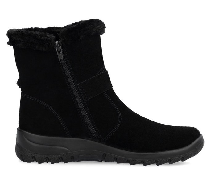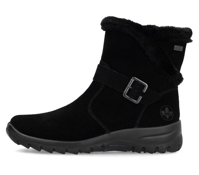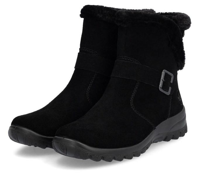 Fekete színű Rieker L7179-00 női bokacsizma. Felsőrészének az anyaga: bőr felső