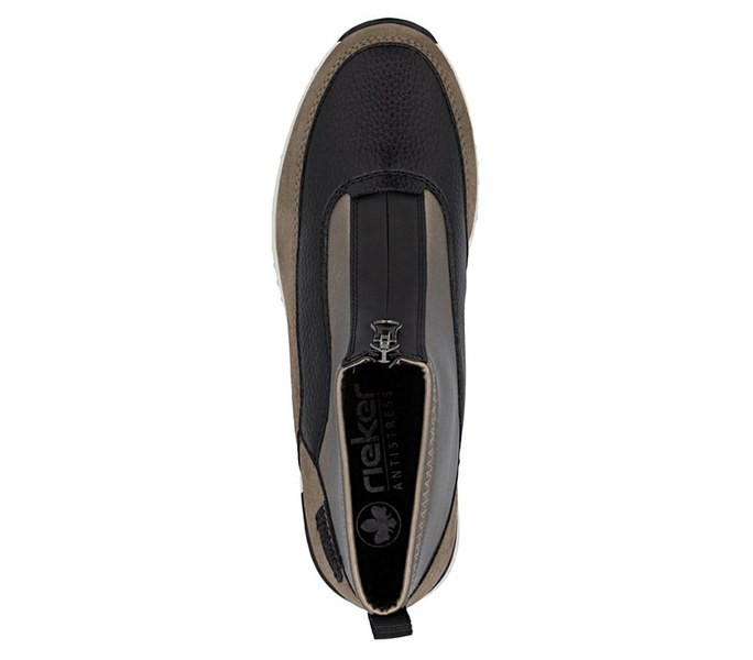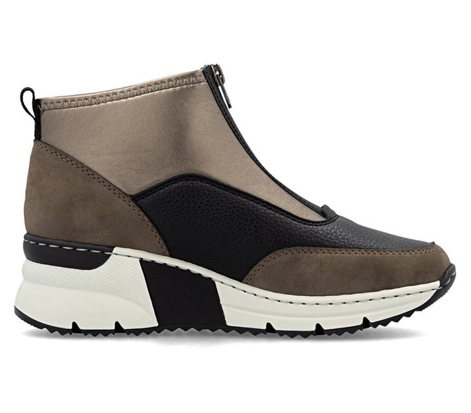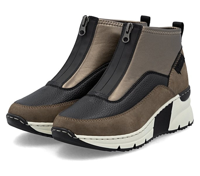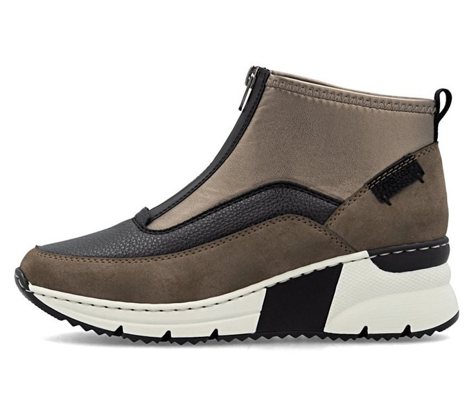 Barna színű Rieker N6352-25 női bokacsizma. Felsőrészének az anyaga: Ekológikus/textil felső