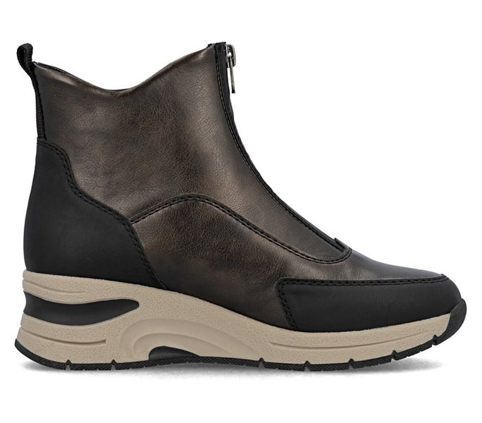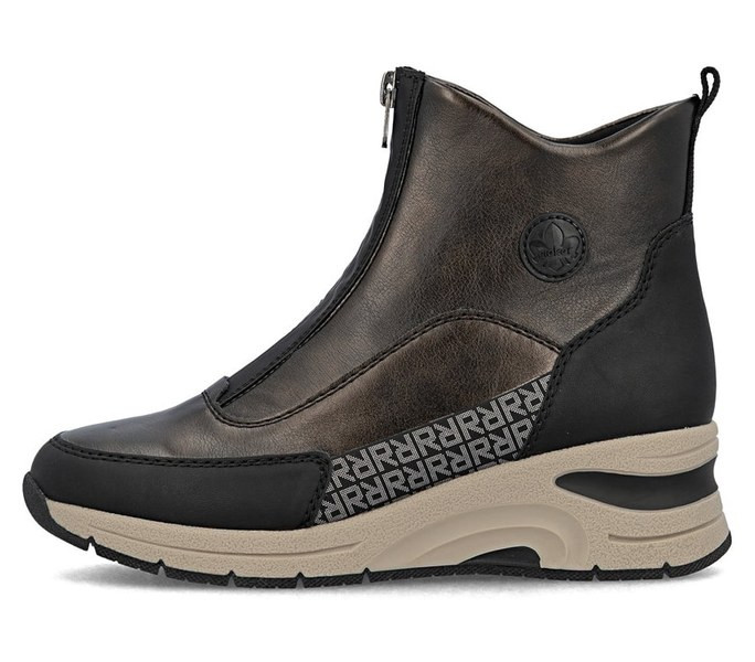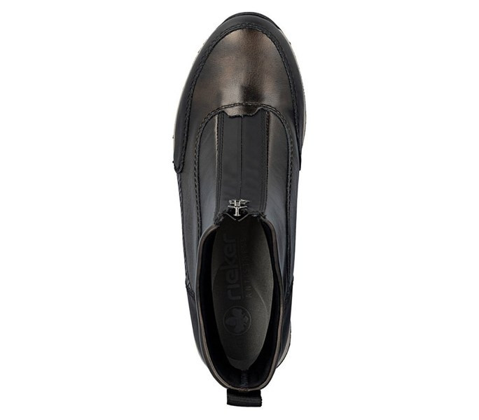 Fekete színű Rieker N9381-60 női bokacsizma. Felsőrészének az anyaga: Ekológikus bőr felső