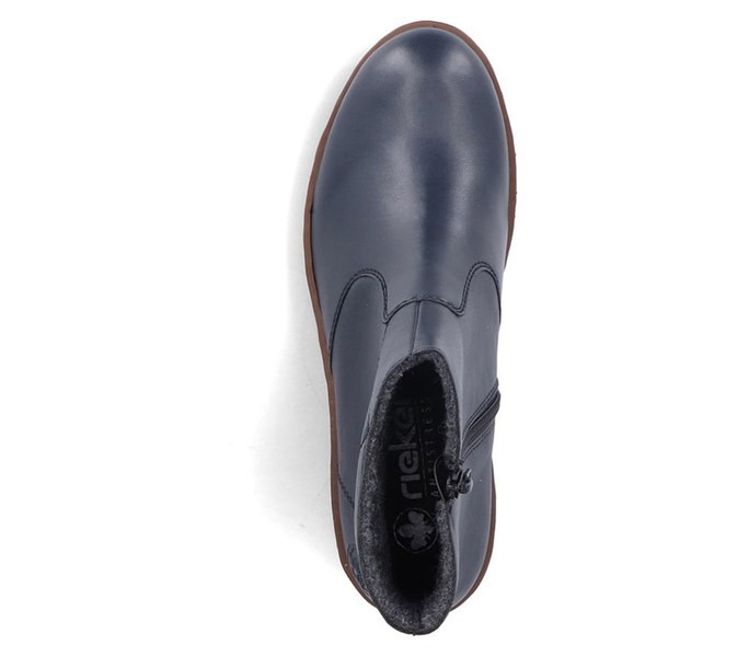 Kék színű Rieker X9164-14 női bokacsizma. Felsőrészének az anyaga: Ekológikus bőr felső