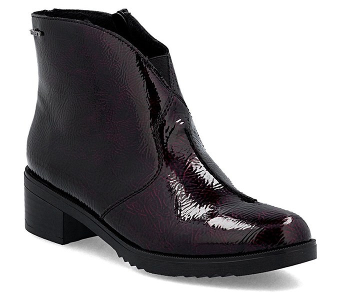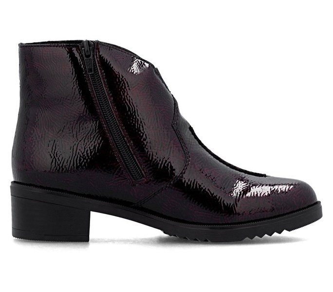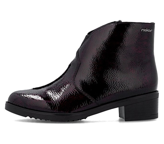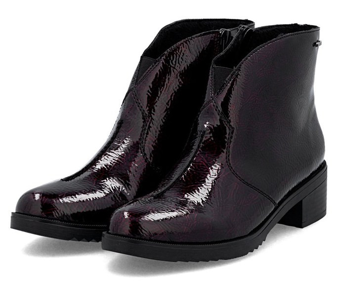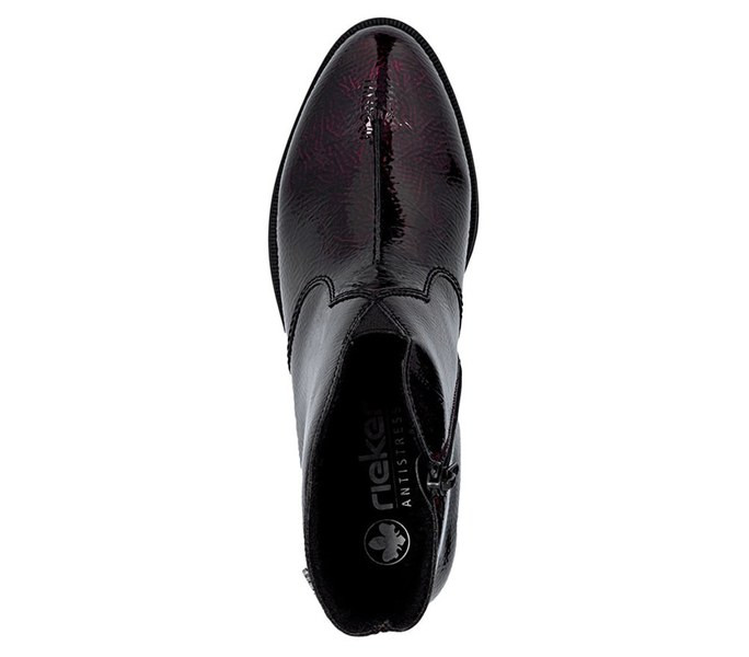 Bordó színű Rieker Y0553-35 női bokacsizma. Felsőrészének az anyaga: Ekológikus bőr felső