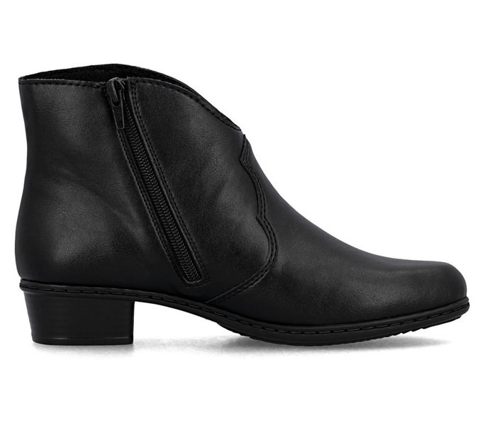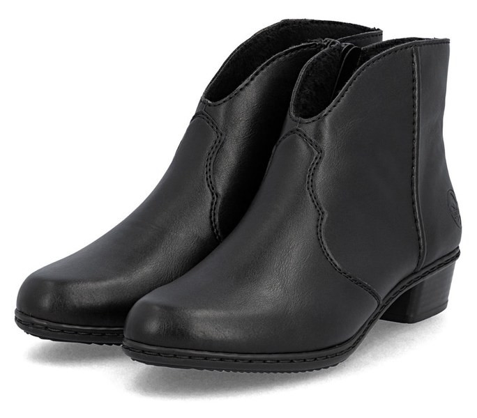 Fekete színű Rieker Y0754-00 női bokacsizma. Felsőrészének az anyaga: Ekológikus bőr felső