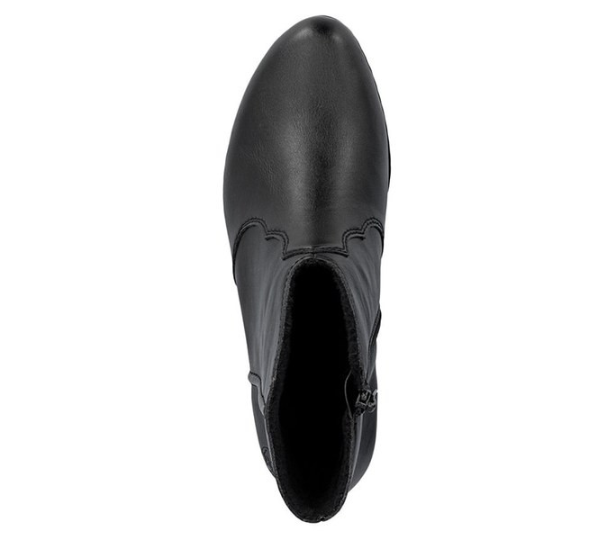 Fekete színű Rieker Y0754-00 női bokacsizma. Felsőrészének az anyaga: Ekológikus bőr felső