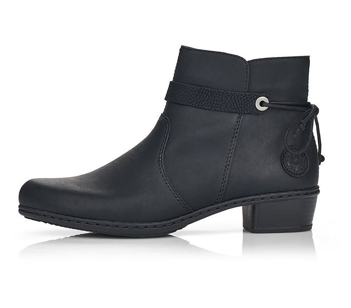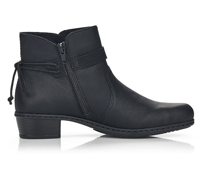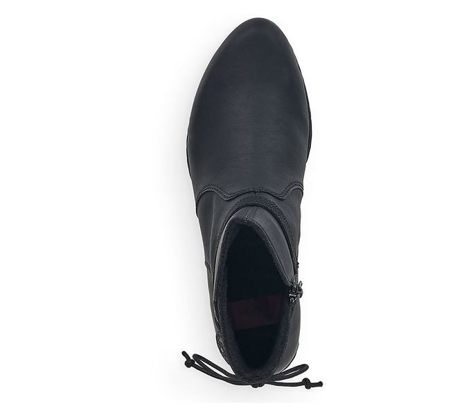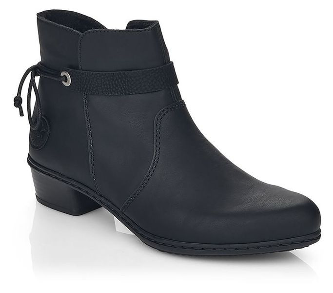 Fekete színű Rieker Y0782-01 női bokacsizma. Felsőrészének az anyaga: műbőr