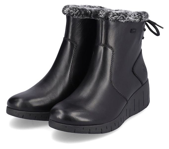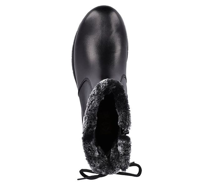 Fekete színű Rieker Y1350-00 női bokacsizma. Felsőrészének az anyaga: bőr