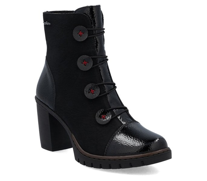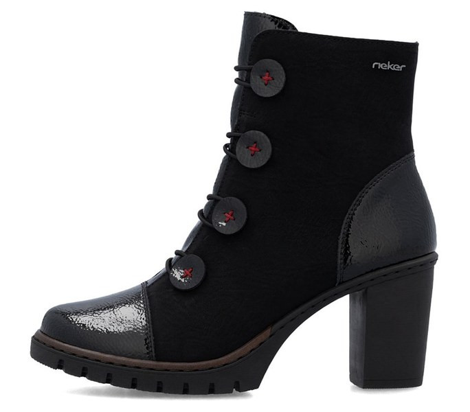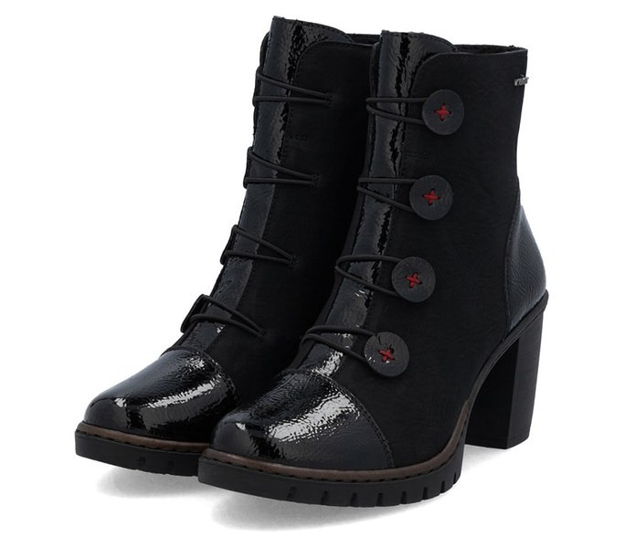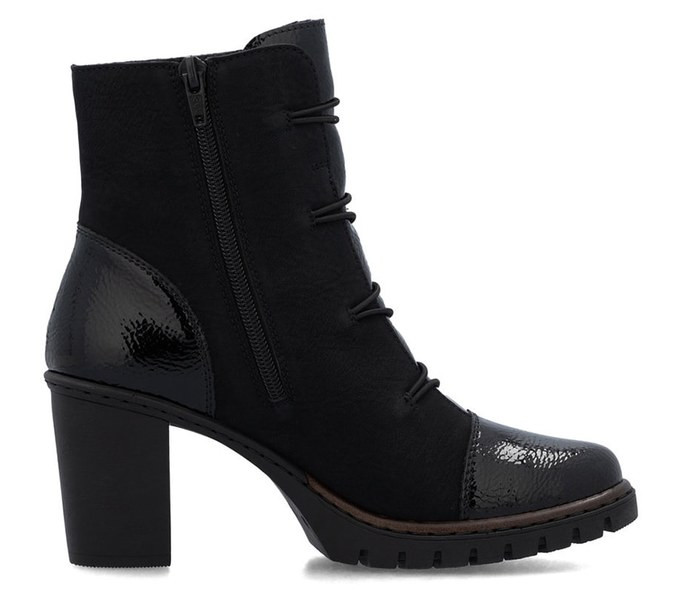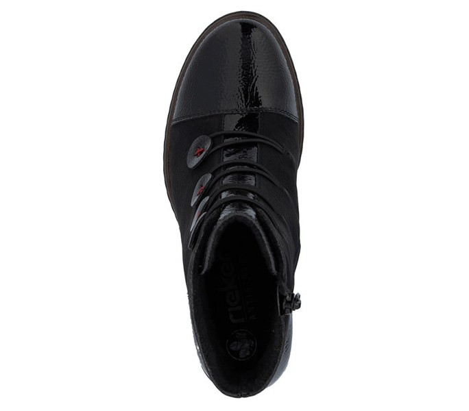 Fekete színű Rieker Y2576-00 női bokacsizma. Felsőrészének az anyaga: Ekológikus bőr felső