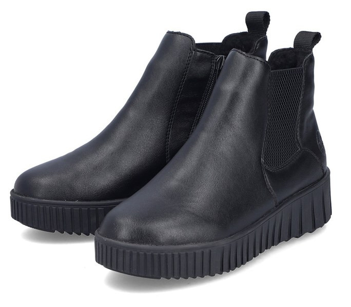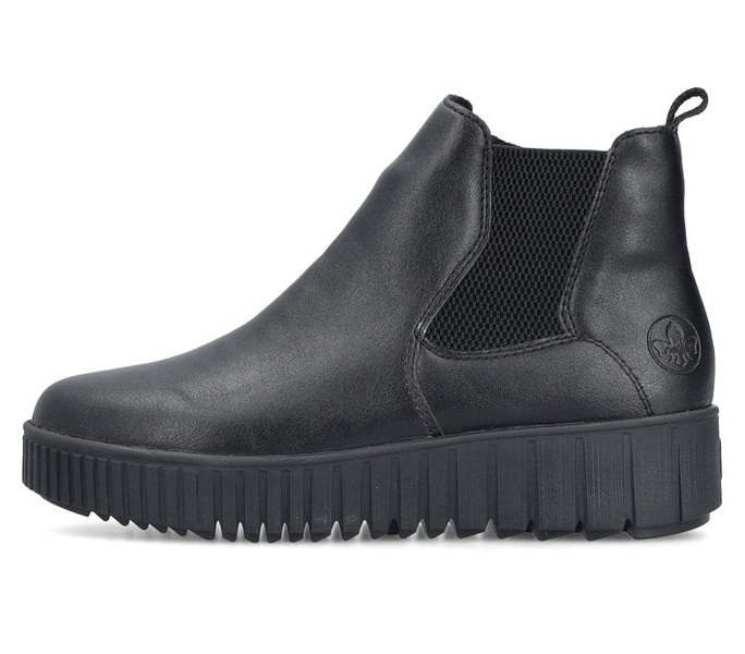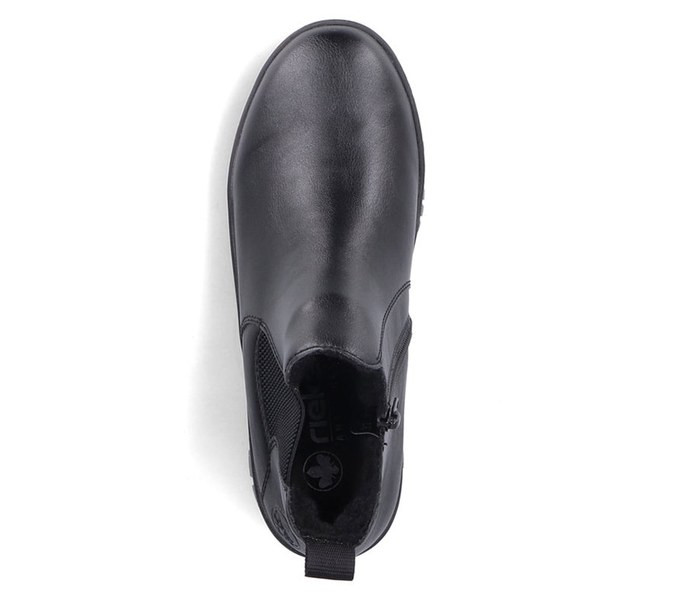 Fekete színű Rieker Y6151-00 női bokacsizma. Felsőrészének az anyaga: Ekológikus bőr felső
