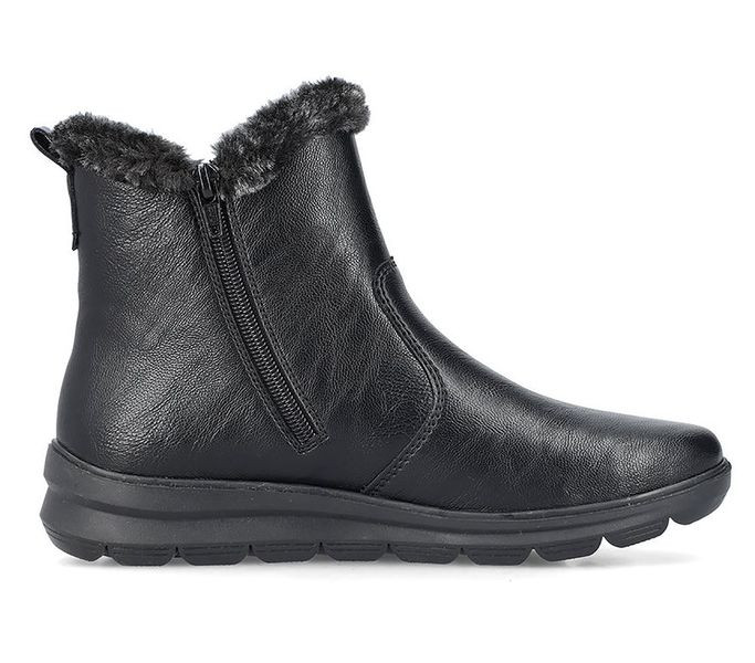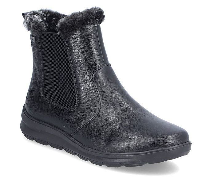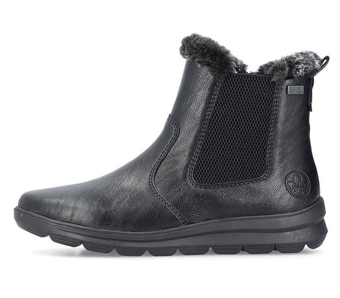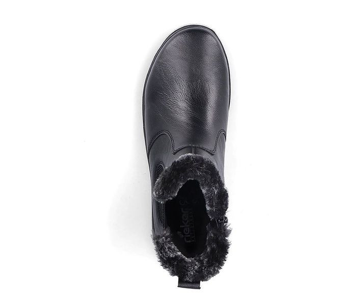 Fekete színű Rieker Z0061-00 női bokacsizma. Felsőrészének az anyaga: műbőr felső