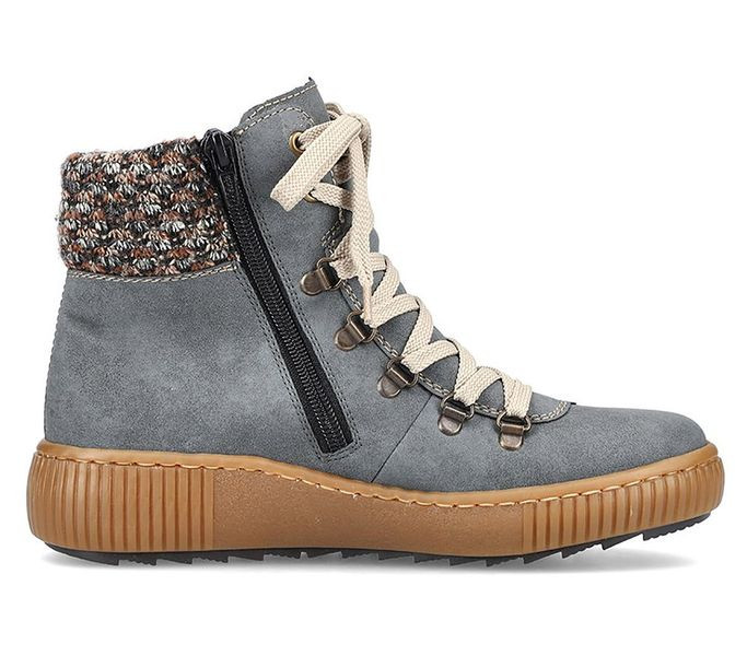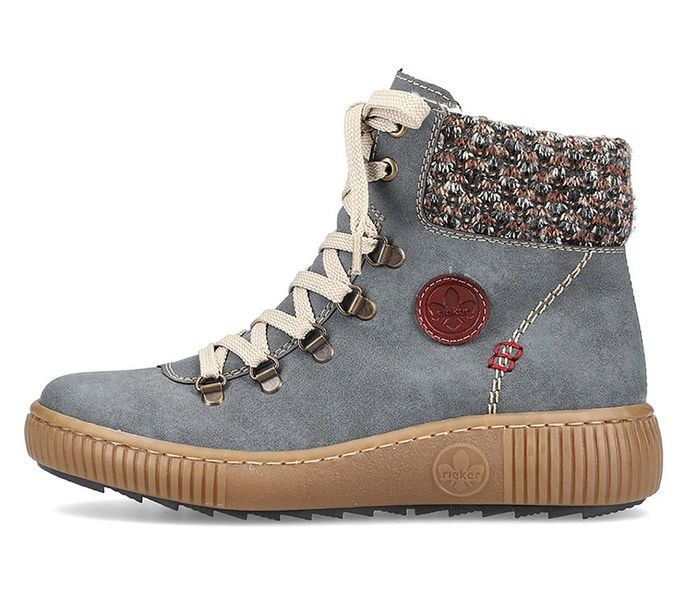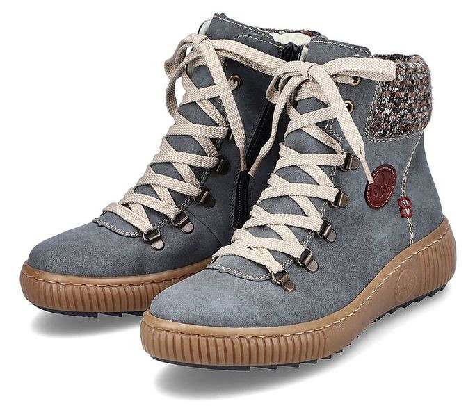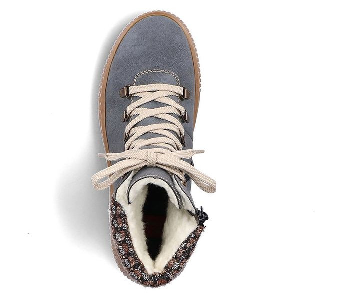 Kék színű Rieker Z6648-14 női bokacsizma. Felsőrészének az anyaga: műbőr